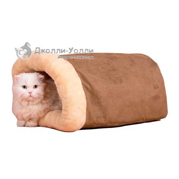 В обивку домика-тоннеля вшита специальная шуршащая бумага, издающая шум, который так любят многие кошки. Благодаря чему в таком домике-мешке можно будет не только отдохнуть и поспать, но и повеселится.
